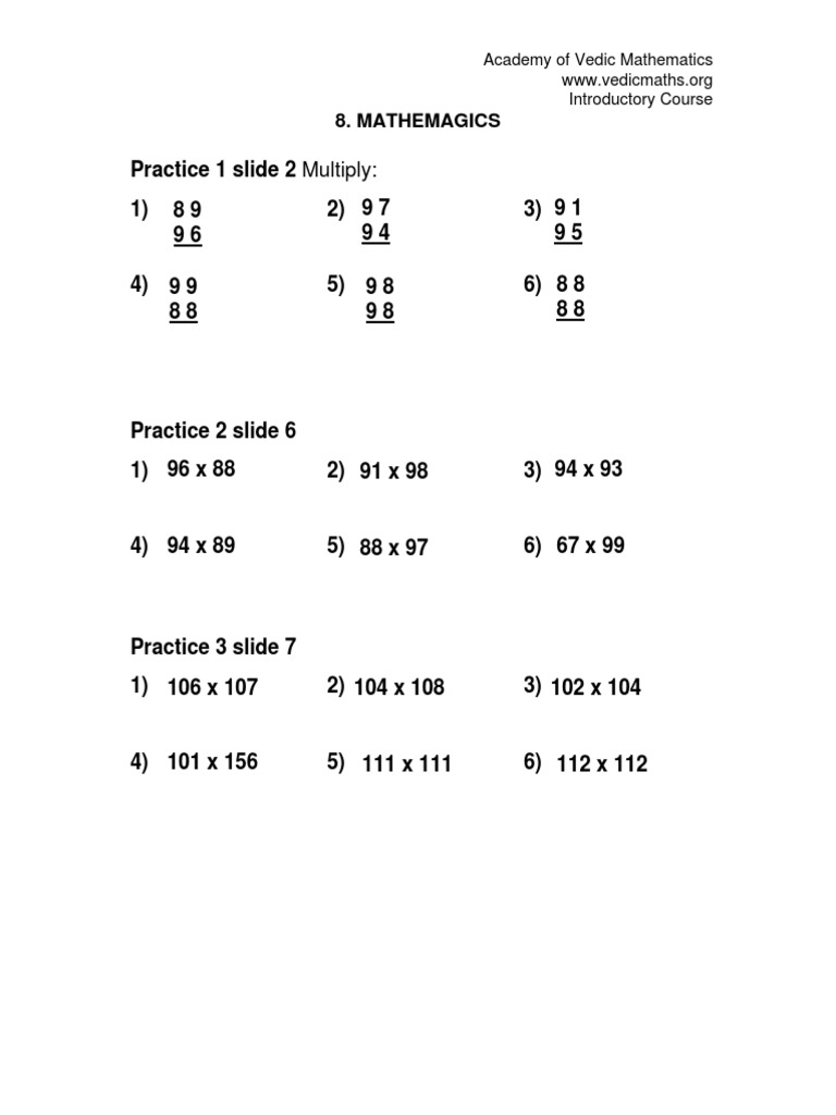 Beginner vedic maths level 1 practice sheets / multiplication practice worksheets to 5x5 : Beginner vedic maths level 1 practice sheets : This site provides comprehensive material on vedic mathematics. Vedic maths online course for students. We are going to provide you beginner to expert level all sorts of vedic math concept absolutely free. Vedic maths level 1 or vedic maths basics can help them tackle big problems with ease. Beginner vedic maths level 1 practice sheets learn to solve the tricky questions based on vedic maths. ¯ the benefits of using vedic mathematics include more enjoyment of maths, increased flexibility, creativity and confidence. The questions are given along with answers and explanations. 10 vedic maths tricks for rapid calculations pcmb blog / 1.vedic mathematics (english) 16th edition by jagadguru swami bharati krsna tirthaji maharaj. This includes an introduction, simple tutorials, lists of resources on vedic mathematics. We are leading organisation and known for the development, research and training on the vedic mathematics. And learn from the books.